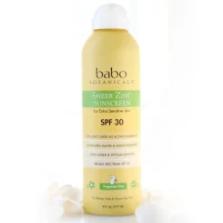 Get the comfort of a lotion sunscreen and the convenience of a continuous spray for the entire family! Babo Botanical’s Sheer Zinc Sunscreen Spray, SPF 30 uses non-nano Zinc Oxide as the physical filter that forms a protective barrier on skin surface to help reflect the sun’s UVA and UVB rays without irritating sensitive skin. This easy to apply formula is enriched with aloe vera and sunflower oil to soothe and moisturize. Provides 80 minutes of water resistance. Hold the bottle 8-12 inches away and spray onto skin. Thoroughly rub in until the white lotion blends into skin. For increased control, spray onto palm of hand and apply into skin. Fragrance Free and perfect for the entire family.