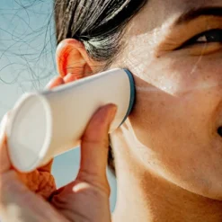 - Use the sponge applicator to glide sunscreen directly onto skin, then blend and dab to rub it in (no messy hands!)
