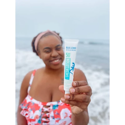 Meet your new daily sunscreen for indoor and outdoor protection. Blue Lizard’s Sheer Face sunscreen lotion rubs in smooth and dries clear for sheer mineral sun protection. This daily sunscreen combines dermatologist recommended Zinc Oxide with plant extracts that protect skin from damaging blue light. With a super blend of hydrating hyaluronic acid, antioxidants, vitamin E and shea butter, this sheer sunscreen nourishes and moisturizes skin.