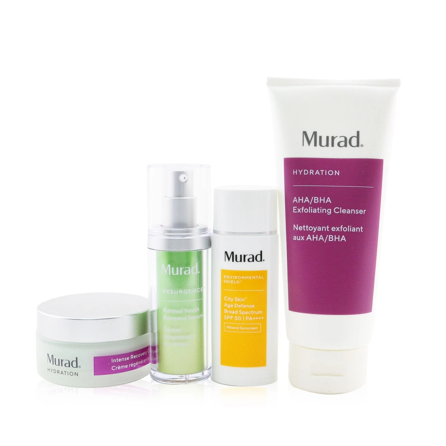 Murad Skin Clinic Radiance Revealed With Murad Set: 1x Resurgence Retinol Youth Renewal Serum – 30ml/1oz 1x Environmental Shield City Skin Age Defense Mineral Sunscreen SPF 50 – 50ml/1.7oz 1x AHA/ BHA Exfoliating Cleanser – 200ml/6.75oz 1x Intense Recovery Cream – 50ml/1.7oz Ideal both for personal use & as a gift