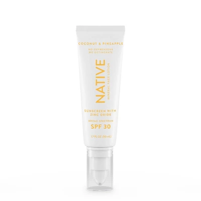 NATIVE mineral face sunscreen is designed so that no matter your skin tone, you won’t have to deal with impossible-to-rub-in white residue, slow absorption, or a tacky, greasy skin-feel. Our ultra-sheer formula is also invisible under makeup, feels light and smooth on your skin, and has a matte finish. The Coconut & Pineapple scent smells like the best parts of summer — with notes of juicy melon and pineapple mixing and mingling with tones of coconut and rose petals to create a scent that’s easy and breezy.