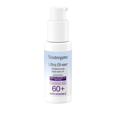 Enjoy a full day in the sun while protecting and moisturizing your skin with Neutrogena Ultra Sheer SPF 60+ Face Serum. This soft, weightless facial sunscreen with vitamin E defends your skin by providing all-day hydration, plus broad-spectrum UVA and UVB protection. The sheer sunscreen serum from a dermatologist-recommended brand leaves skin feeling soft and smooth–and serves double duty as a makeup primer. It’s water-resistant for up to 80 minutes, and the fragrance-free formula is both oxybenzone-free and non-comedogenic. In addition to preventing sunburn, when used with other sun-protection methods, Neutrogena Ultra Sheer Face Serum sunscreen decreases the risk of skin cancer and early skin aging caused by the sun. Apply liberally 15 minutes before sun exposure, and reapply after 80 minutes of swimming or sweating, immediately after towel-drying, and at least every two hours. For children under 6 months of age, ask their doctor about sunscreen use.