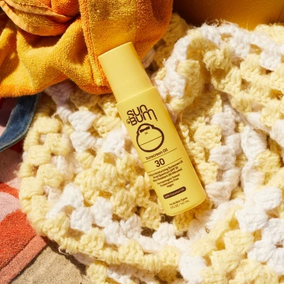 - SUN BUM ORIGINAL SPF 30 SUNSCREEN OIL. Our lightweight, non-greasy SPF 30 Sunscreen Oil hydrates our skin while also helping protect against harmful UV rays.